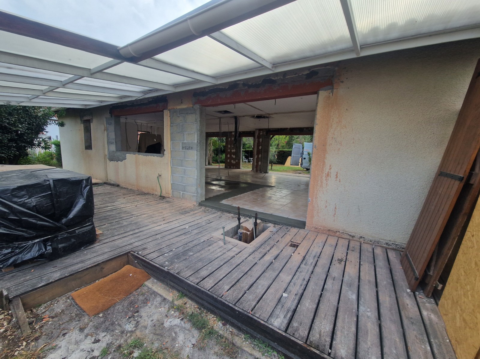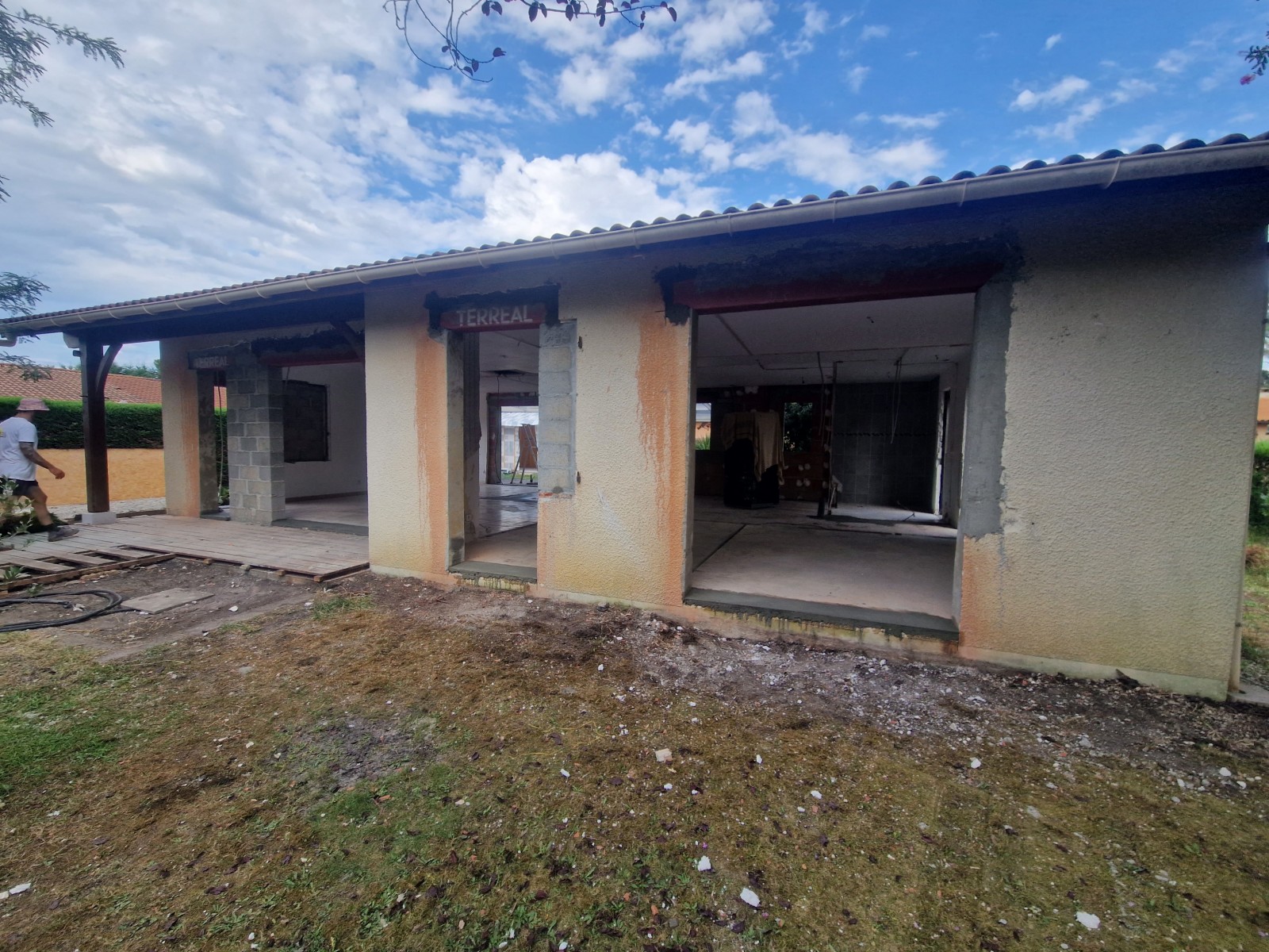 La première étape du projet a consisté à repenser l'agencement intérieur de la maison. Pour cela, nous avons réalisé la démolition de toutes les cloisons intérieures, ainsi que de la cheminée. Cette intervention a permis de créer un espace ouvert et lumineux, laissant libre cours à la créativité et aux envies des propriétaires.