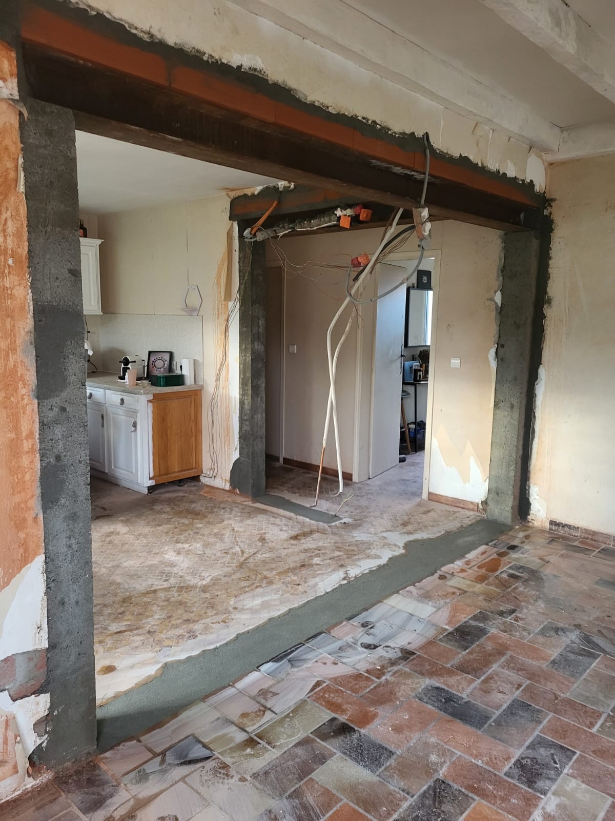 Lorsque nous avons été sollicités pour un projet à Mimizan, notre équipe chez Pierrick Thebault a su relever le défi. La création d’une ouverture dans un mur ancien impliquait de multiples étapes techniques et précises, visant à transformer deux espaces séparés en une pièce unique et harmonieuse.