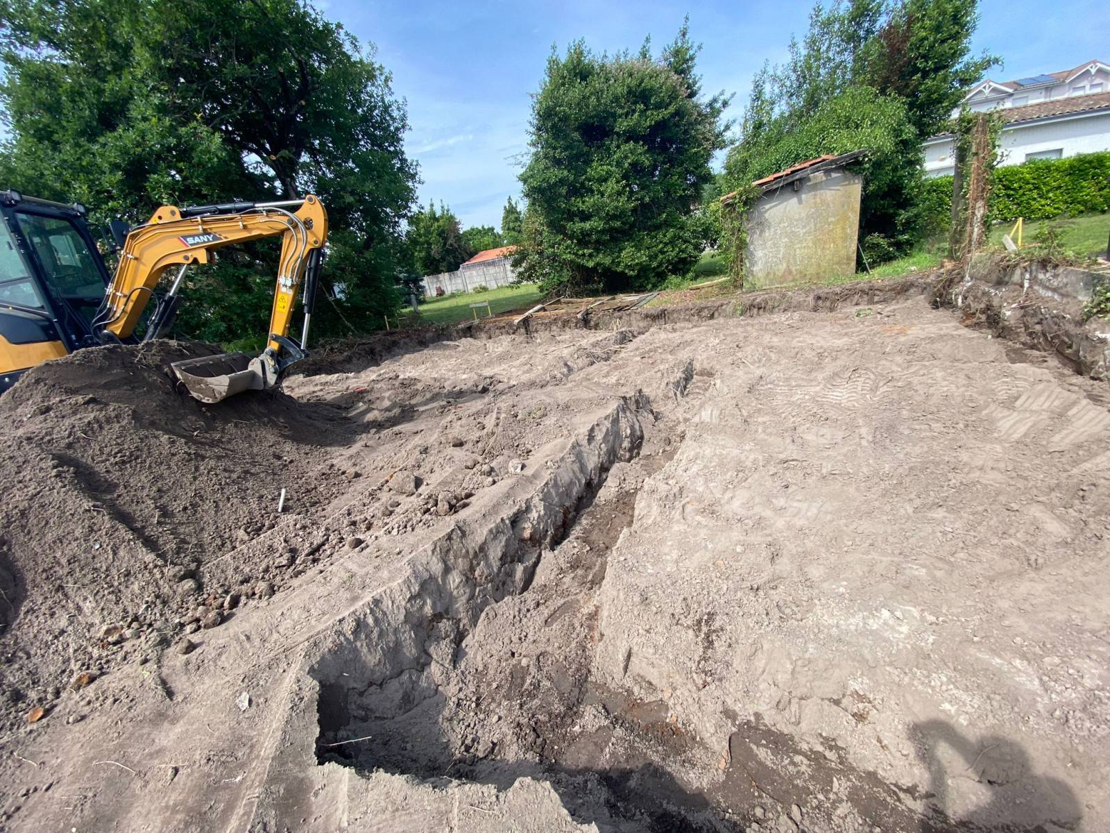 La construction a débuté par un décaissement complet du sol, suivi de la mise en place des fondations. Un ferraillage minutieux a été réalisé avant le coulage du béton, assurant ainsi la solidité et la durabilité de la structure.