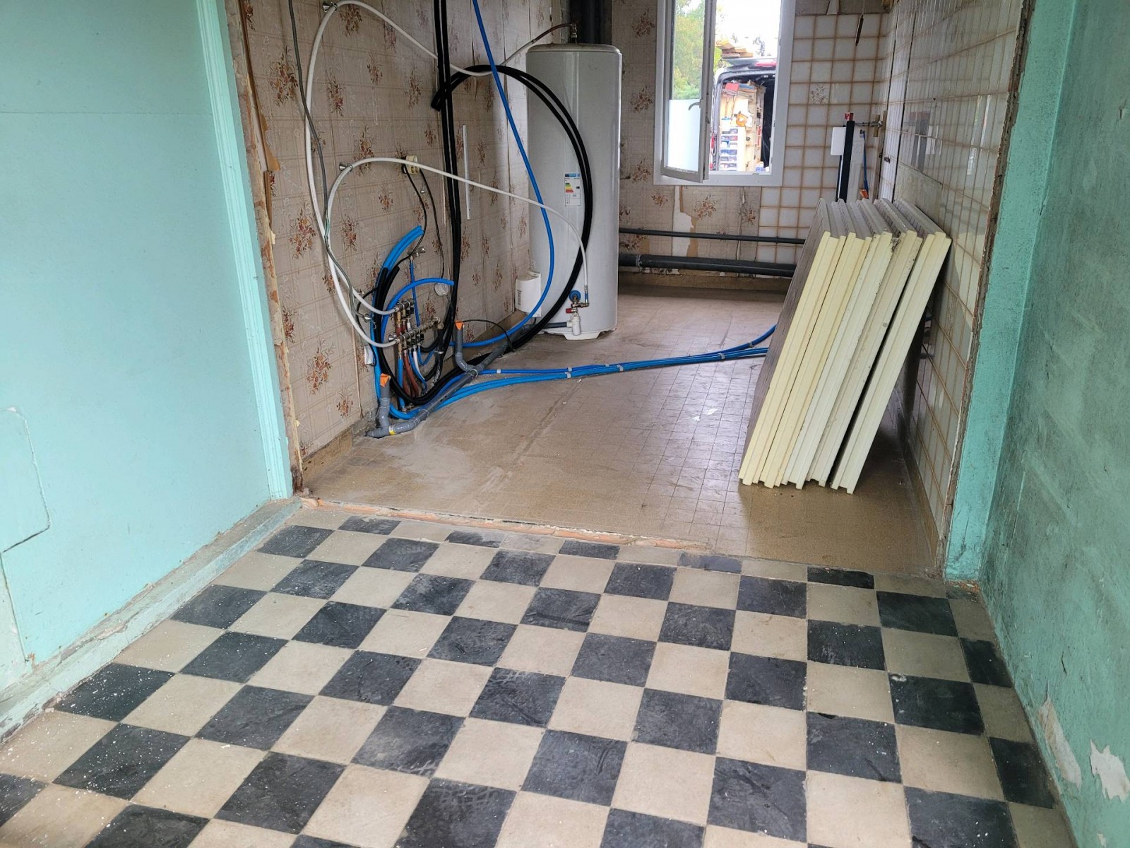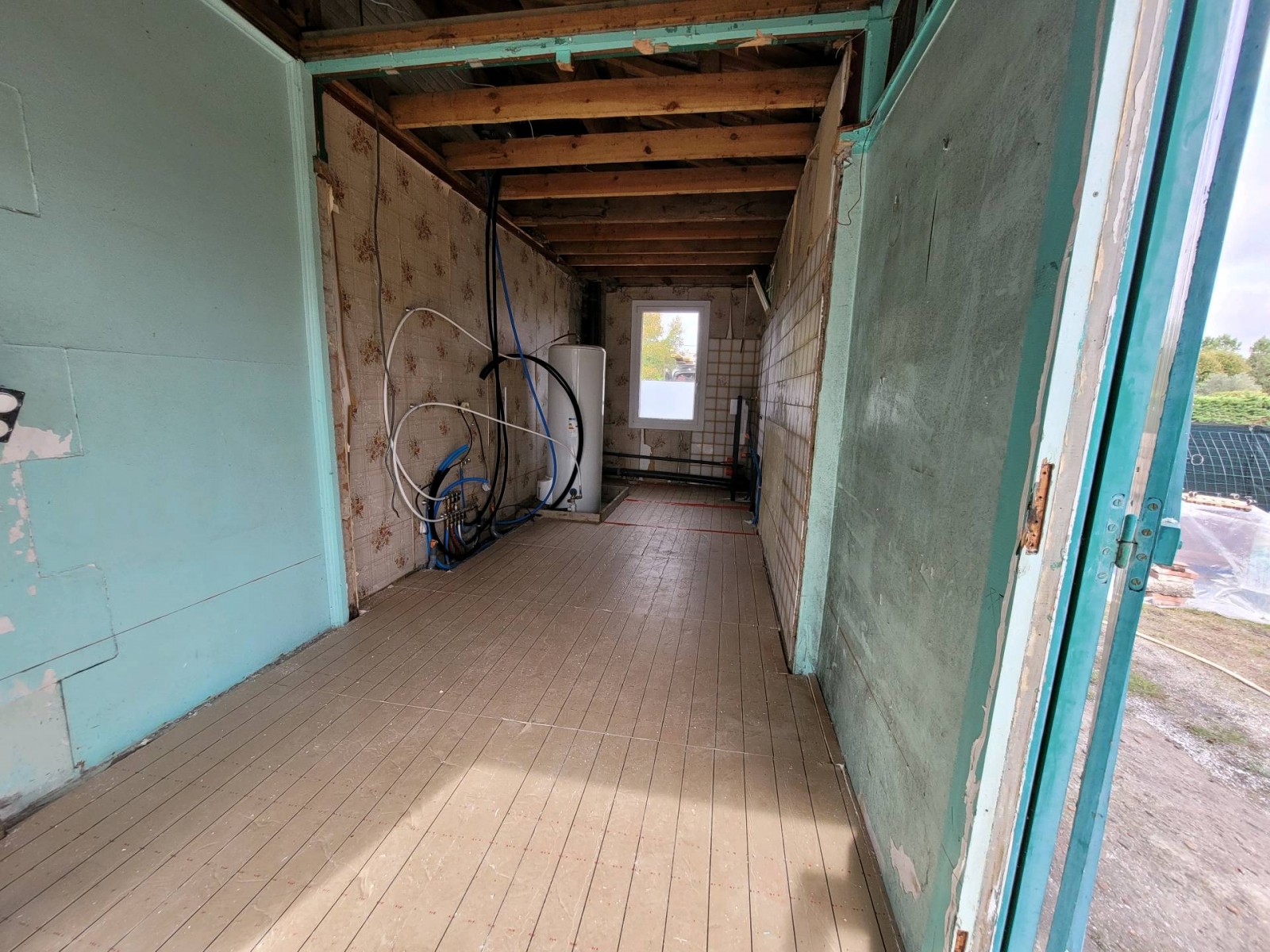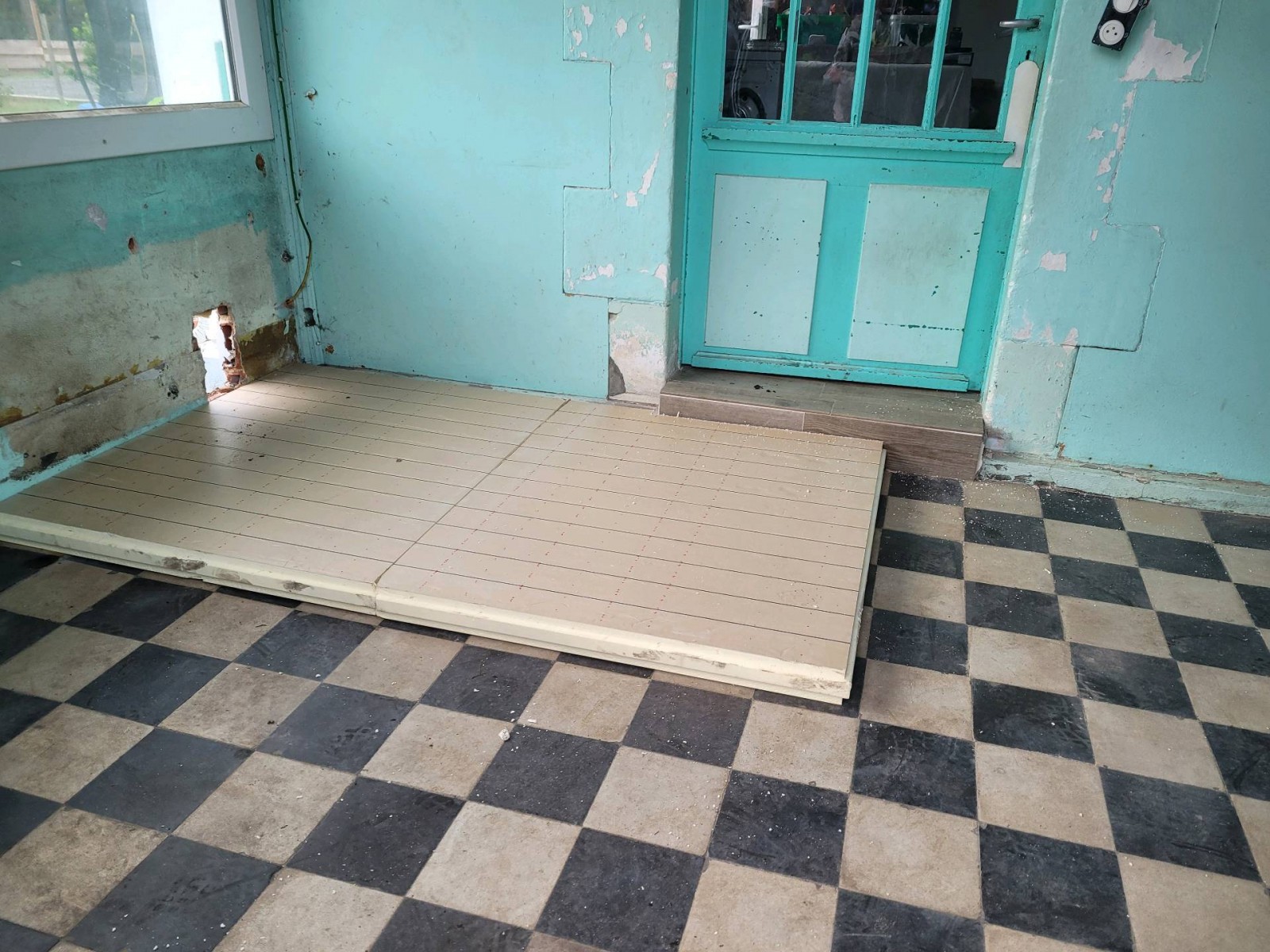 Ce chantier commençait donc par la pose d’un isolant de sol en polystyrène d’une épaisseur de 80mm et il faut dire que cette partie de la maison jamais isolée en avait réellement besoin. Cette opération, permettait entre autres, d’éviter que le froid remonte par le sol et de réaliser d’importantes économies d’énergie en matière de chauffage.
