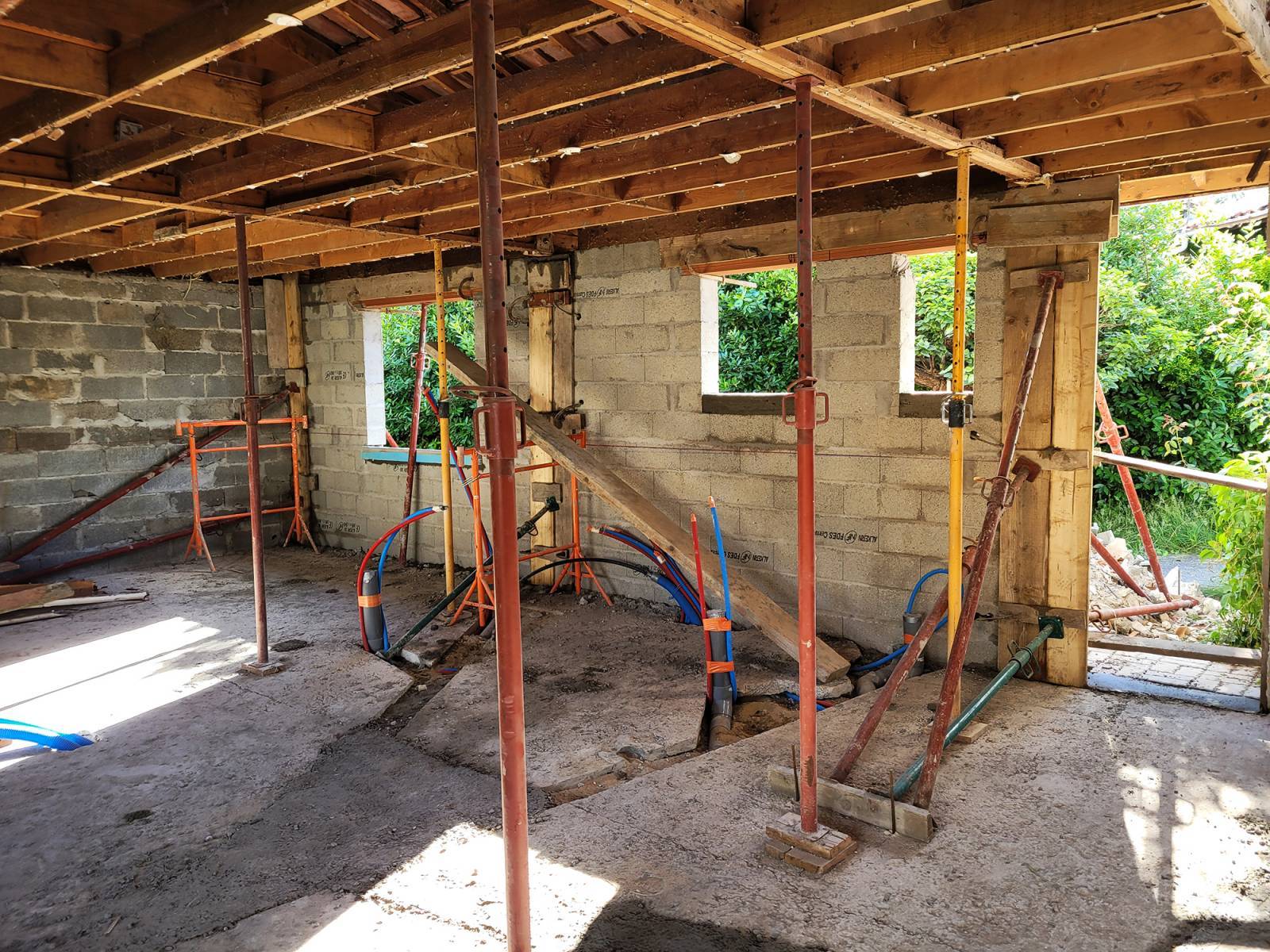 L'équipe de Pierrick Thebault, experte en rénovation de maisons anciennes, a développé une technique unique pour consolider les murs existants sans les dénaturer. Des poteaux en béton stratégiquement positionnés aux extrémités de la façade apportent une stabilité structurelle accrue. L'armature métallique intégrée dans chaque poteau assure une reprise efficace des charges, palliant les défauts fréquents des constructions anciennes.