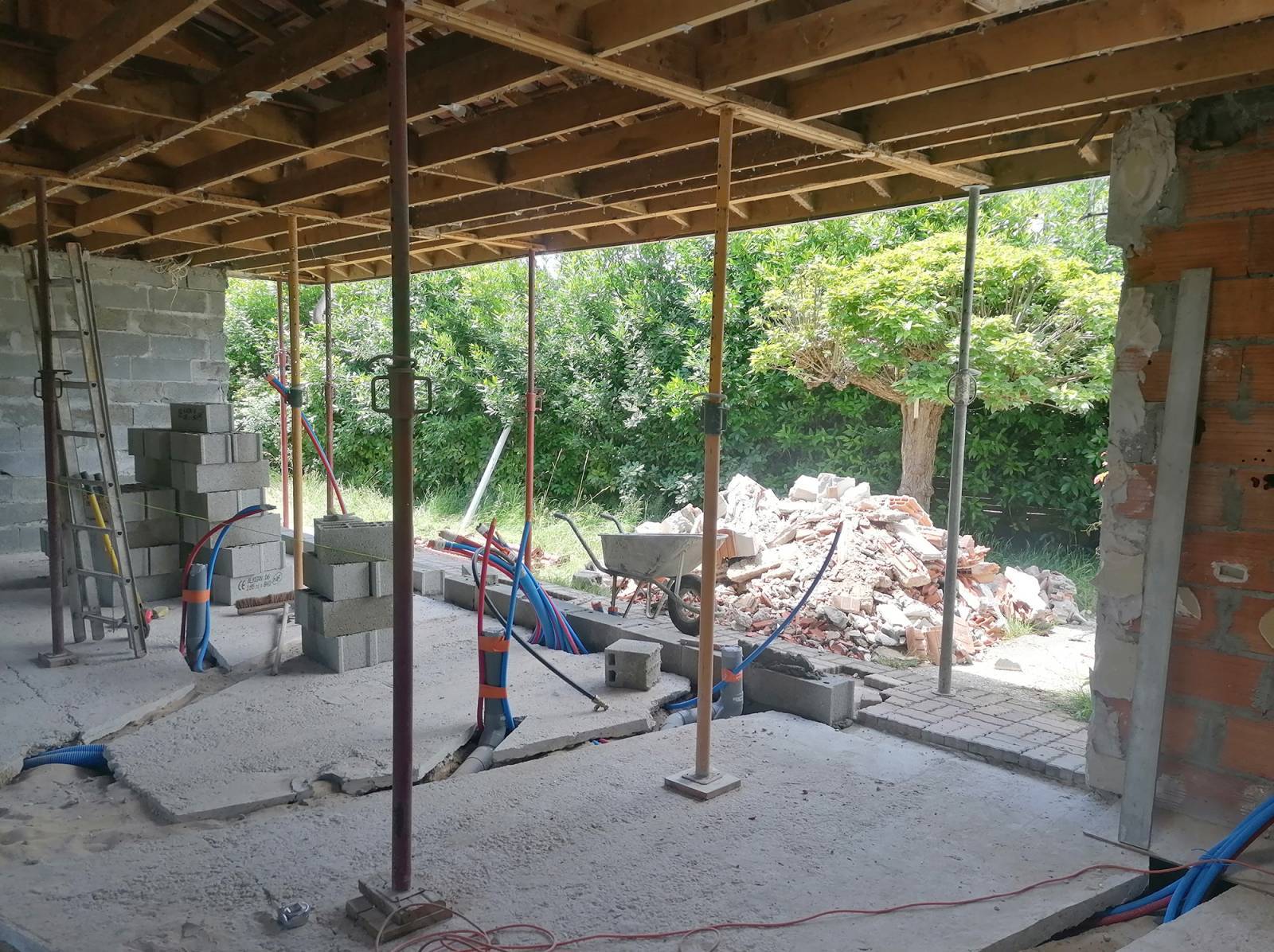 Pierrick Thebault ne fait aucun compromis sur la qualité des matériaux. Des parpaings solides et des poteaux en béton robustes garantissent la longévité de la structure. La charpente traditionnelle, élément central de l'identité de votre maison, est ainsi parfaitement supportée.